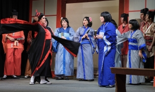 The ninth and probably most enduringly popular collaboration between Gilbert & Sullivan, The Mikado ran for 672 performances after opening in 1885. Inspired by contemporary interest in Japanese culture, the exotic setting allowed Gilbert to disguise in the lyrics his pointed satirical attacks on British politics and institutions of the time